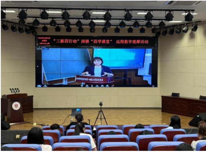 为进一步引导学生深入理解新课程理念,9月29日下午,江苏师范大学教育科学学院联谊云龙区教师发展中心和徐师一附小,在13号楼106报告厅开展远程教学研讨活动。此次活动由徐州市经十路小学袁若茜老师主持,我院刘月芳老师、徐州市教育科学研究院李贺主任、云龙区教师发展中心李红主任、经十路小学刘帅老师、楚韵路小学王国攀老师、镜泊路小学王春花老师、徐师一附小吴宜凝老师应邀参加此次活动,我院小学教育专业本科生、研究生、部分学科教学论教师、云龙区全体数学教师参加了本次活动。