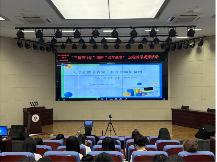 随后,王春花老师以《分米和毫米的认识》为课例进行分析,提出“动手实践求真知,亲身体验培量感”的观点。接着,吴宜凝老师深度解读了“做数学”的内涵,并指出在新课标引领下,徐师一附小教育集团多次开展以“做”为支架,促学科育人特色的教研学习活动,提升了教师学科素养。
