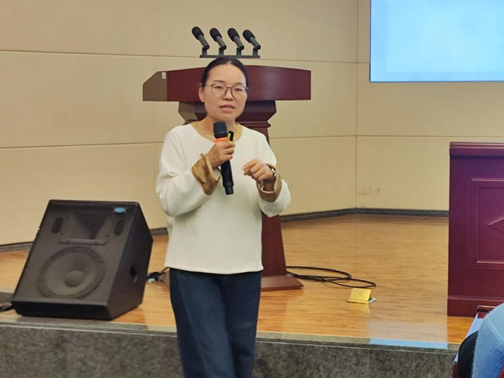 讲座伊始,朱欣欣老师以自身经历为例,引出现阶段心理健康教育工作现状及其面临的职业难题。随后,朱欣欣老师向在座师生介绍了青少年群体所面临的心理健康问题,并提出应对青少年心理健康问题要做到“四会”的建议。在详细介绍心育工作中的“四位一体”理念后,朱欣欣老师就心育工作现状、学校心理健康测评常见问题以及青少年心理健康面临的困境,强调健康教育要“有人做”、监测预警要“真在做”、咨询服务要“规范做”和干预处置要“能做好”。